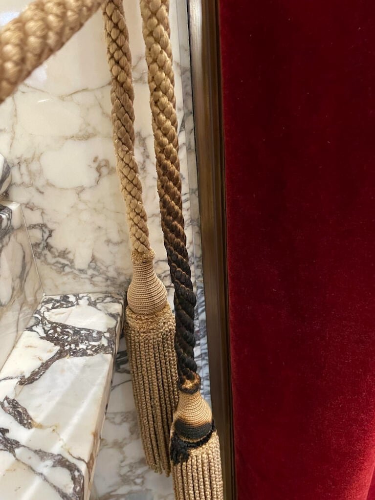 The Legislature’s reception room houses irreplaceable artifacts including a chenille rug from 1928 and original mohair draperies.